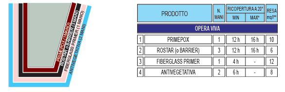 Dopo almeno 4 ore applicare due mani di antivegetativa a distanza di almeno 6 ore una dall’altra. Attendere 24 ore per il varo.
